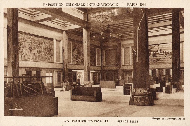 A similar map of Indigenous Indonesians in the archipelago was painted by Mas Pirngadie (1875-1936) for the Koninlijk Bataviaasch Genootschap van Kunsten en Wetenschappen (Royal Batavian Society of Arts and Sciences) in Jakarta. The map depicted seventy-eight individuals, each wearing particular cultural attributes representing a specific tribe of the Indonesian archipelago. From historian Marieke Bloembergen’s Colonial Spectacles. The Netherlands and the Dutch East Indies at the World Exhibitions (1880-1931) (2006) we learn that Pirngadie’s work was first exhibited at the Dutch Pavilion at the 1931 Colonial Exhibition in Paris. It was intended to show off the greatness of the Netherlands as a colonial nation to millions of visitors, disseminating the racial categories visualised in the map to a global audience.