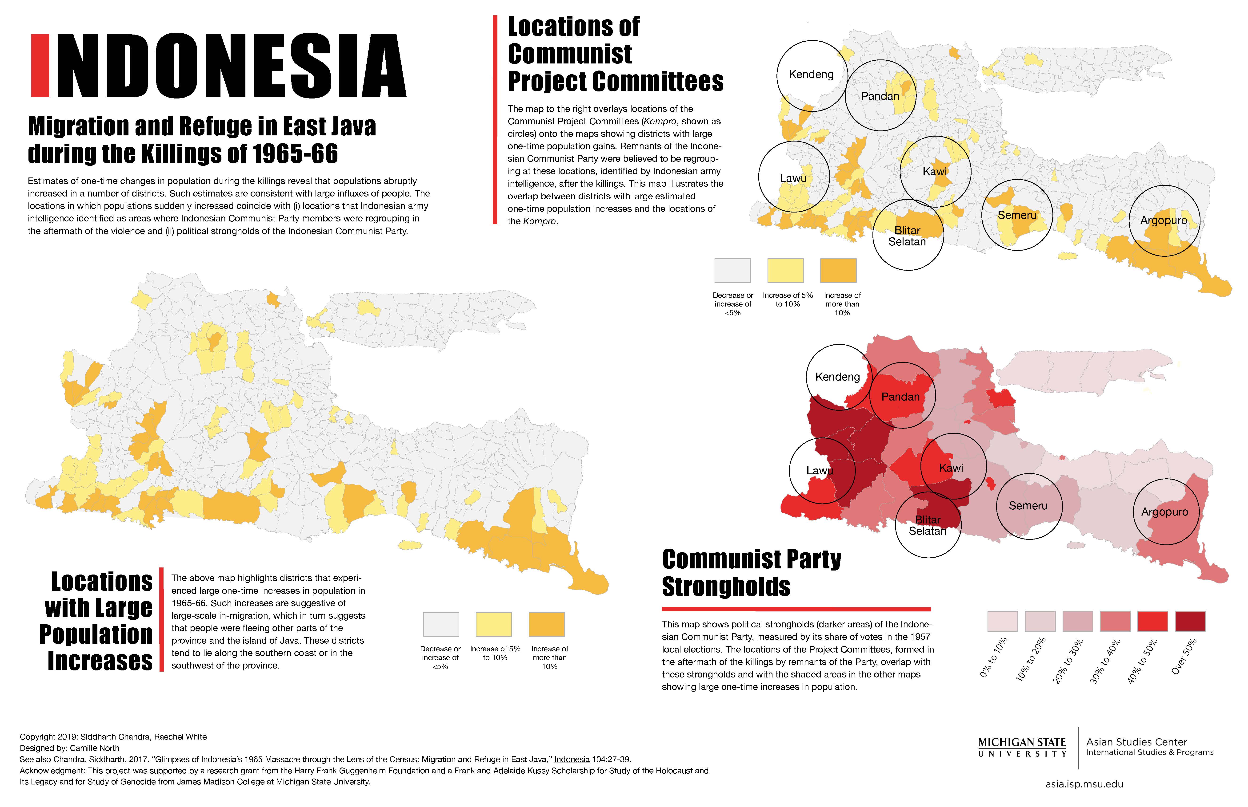 This project titled, 'Geographic Perspectives on the Indonesian Killings of 1965-66 in Central and East Java' is supported by a research grant from the Harry Frank Guggenheim Foundation and a Frank and Adelaide Kussy Scholarship for Study of the Holocaust and Its Legacy and for Study of Genocide from James Madison College at Michigan State University.