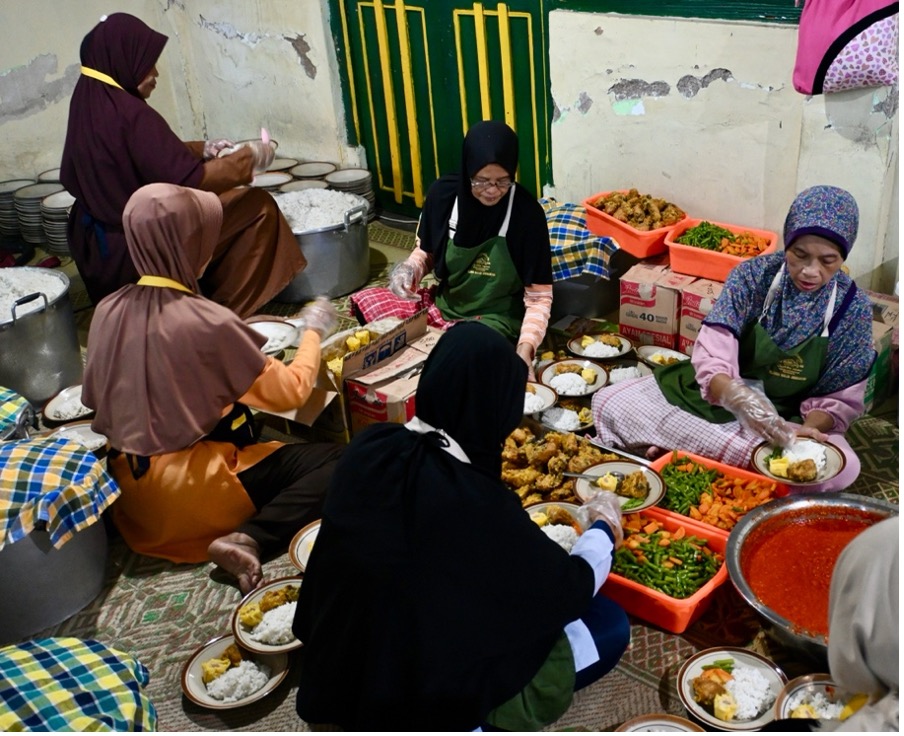 The mosque began offering free buka puasa meals in the year 2000. At that time, it prepared approximately 500 meals per day. The scale of the program has gradually increased to the current level of 3,500 to 3,800 per day, for a total of 105,000 to 114,000 meals across the fasting period. This is a costly, efficient and well managed operation. The total cost is approximately 1.5 billion rupiah or $US90,500.